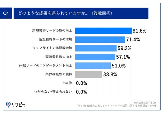 「Q4.どのような成果を得られていますか。(複数回答)」(n=98)と質問したところ、