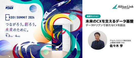 アルティウスリンクアルティウスリンク株式会社(所在地:東京都新宿区、代表取締役社長:網野 孝、以下 アルティウスリンク)は、2024年9月3日(火)・ 4日(水)2日間にわたって⻁ノ門ヒルズフォーラム会場とオンライン配信のハイブリッド形式で開催されるビジネスイベント「KDDI SUMMIT 2024」(主催:KDDI)に上席執行役員 兼 CDOの佐々木 亨が登壇することをお知らせいたします。開催に先立ち、2024年7月17日から参加登録の受付を開始いたします。