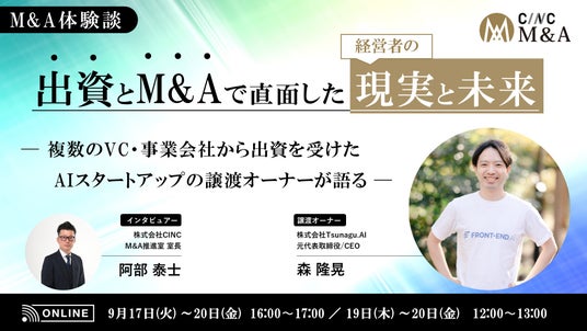 ・タイトル:【M&A体験談】出資とM&Aで直面した「経営者の現実と未来」 ~複数のVC・事業会社から出資を受けた "AIスタートアップ" の譲渡オーナーが語る~