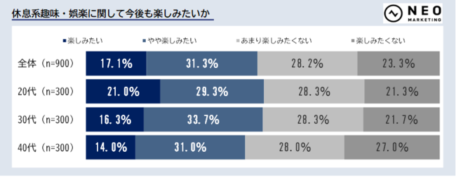 生活者起点のリサーチ&マーケティング支援を行なう株式会社ネオマーケティング(所在地:東京都渋谷区)2022年12月2日(金)~2022年12月5日(月)の4日間、全国の20代~40代の男女を対象に休息系趣味・娯楽に調査をテーマにインターネットリサーチを実施いたしました。