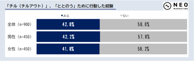 また、「チル」するため、「ととのう」ために行動したことがあるのは男女ともに4程度となっています。