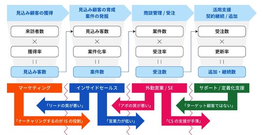 Salesforceが提唱するThe Model※を導入し、マーケティング、インサイドセールス、フィールドセールス、カスタマーサクセスといった機能分化型の組織体制に移行する企業が増加しています。