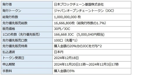 ■ジャパンオープンチェーントークン(JOC)先行優先販売概要