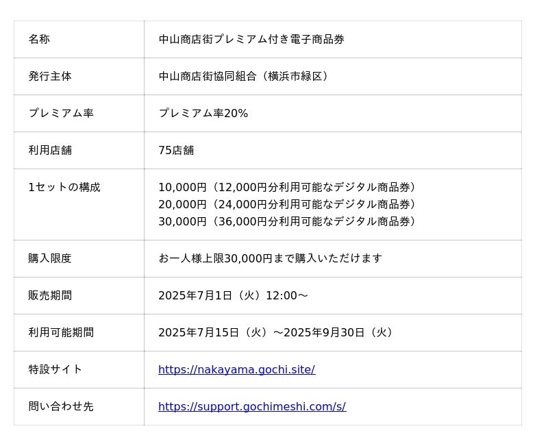 Gigi株式会社(代表取締役:今井了介、所在地:東京都港区)は、中山商店街協同組合(所在地:横浜市緑区)と連携し、地域経済の活性化を目指し、電子クーポン「プレミアム付き電子商品券」の販売を2025年7月1日(火)12時00分より開始しました。