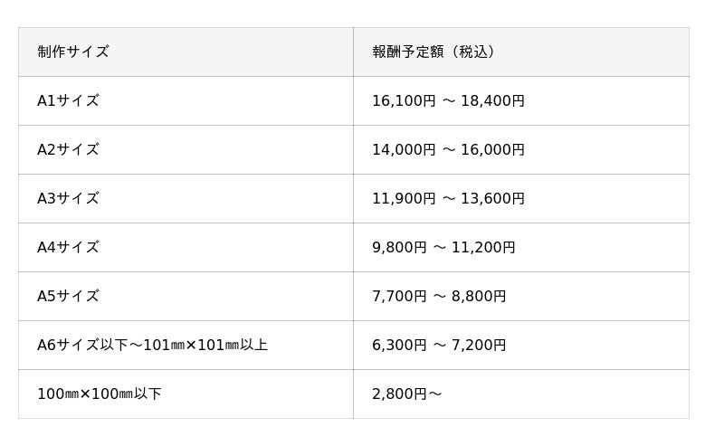 ※100mm×100mm以下は、制作するイラストの要素の個数に応じて報酬額が加算されます。