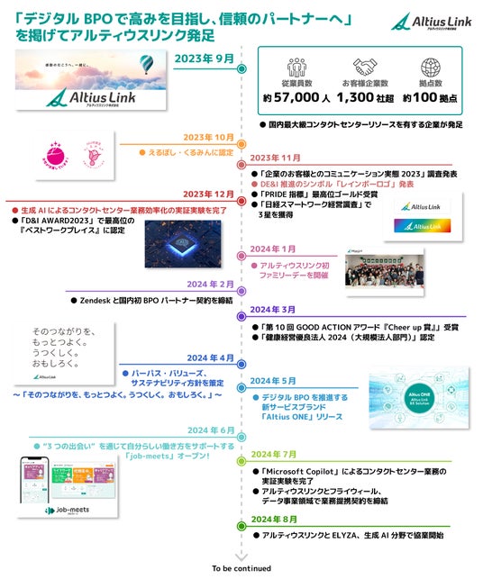 アルティウスリンク株式会社(所在地:東京都新宿区、代表取締役社長:網野 孝、以下 アルティウスリンク)は、2024年9月1日に発足1周年を迎えたことをお知らせいたします。お客様企業をはじめとするすべてのステークホルダーの皆様のご支援があり、この日を迎えられたことを心より感謝申し上げます。