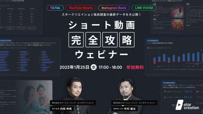 Star Creation 主催「ショート動画 完全攻略ウェビナー」TikTok、YouTube Shorts、Instagram Reels、LINE VOOM のインサイト・広告・クリエイティブ