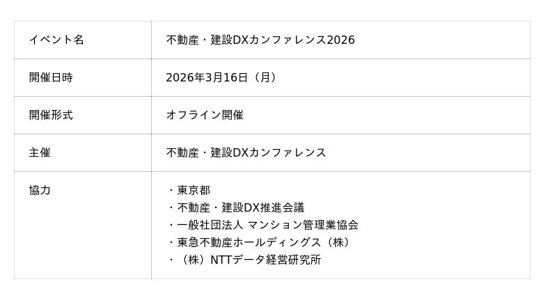 本カンファレンスは、日本の不動産・建設業界を牽引する大手企業から、革新的な技術を持つスタートアップまでが一堂に会するエグゼクティブ限定のイベントです。業界全体のDX推進を加速させるため、各社の先進的な知見やノウハウを共有し、新たな共創を生み出す場として開催されました。