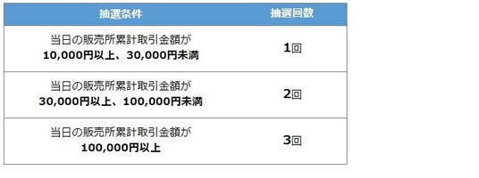 - 抽選条件の取引金額については実際の取引金額に準じます。