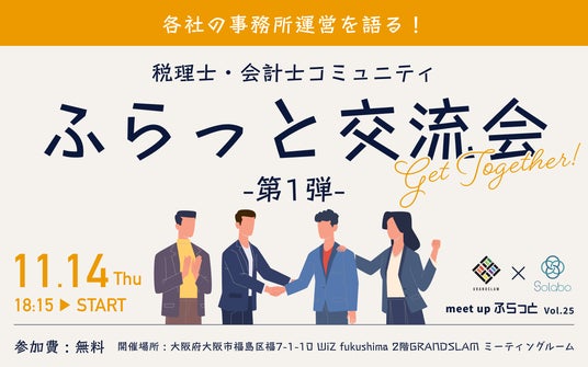株式会社SoLabo税理士・会計士の皆様が集まり、それぞれの事務所運営にまつわる経験や知識を気軽に共有する少人数制のイベントを開催します。