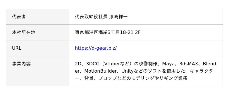 お客様を起点に“ギア”を回すことで、感動とワクワクに貢献します。デジタルギア株式会社は、2023年に設立されたデジタルエンターテイメント制作会社です。アニメやゲーム、Vtuberなどのキャラクターや背景の3Dモデル制作をはじめ、イラストや2DCGアニメーションの制作も手がけています。「Drive your Digital」を掲げ、クライアントのニーズに応じた最適なクリエイティブを提供することを使命としています。3Dキャラクターのモデリングやモーション収録、イラスト制作、Live2D、Spineを用いたアニメーションなどをワンストップで対応可能な体制を強みとしています。エンジニア、ディレクター、デザイナーが連携し、企画から制作まで一貫したサービスを提供しています。今後は、Vtuberのタレントマネジメントや広告代理事業にも展開し、業界をリードするマルチクリエイター企業を目指します。