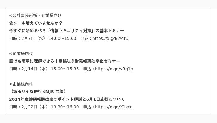 申込URLまたはMJSコーポレートサイト(https://www.mjs.co.jp/seminar/)よりお申し込みください。受付完了のメールが届きますのでご確認ください。