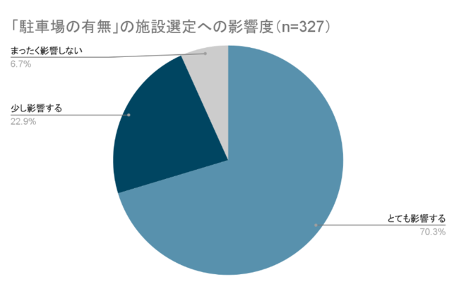 多くのファミリーが車を使って施設に出かけていることは確認できましたが、はたして「駐車場の有無」は、施設を選ぶ際の判断にどれほど影響を与えているのでしょうか。