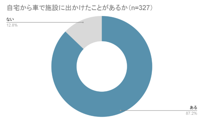 つぎに、自宅からおでかけ施設への移動時に、車で出かけたことがあるかどうかについて尋ねてみました。