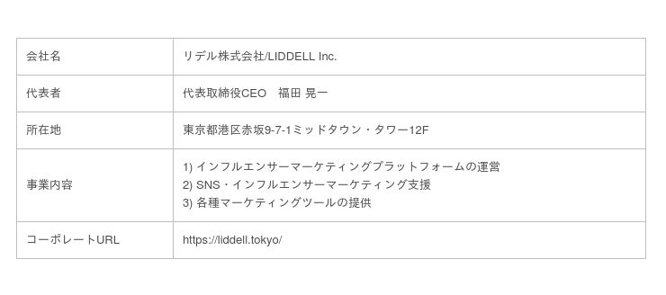 具体的には、6,000社の企業と3万人のインフルエンサーが、多様なSNS・マーケティング課題を一元的に管理し、効率的に解決できる『LIDDELL INFLUENCER WORKSPACE(LIW /リデル・インフルエンサー・ワークスペース)』を通じて、個人の影響力を最大化するプラットフォームによって、企業と個人が対等に取引できる社会の実現を目指しております。