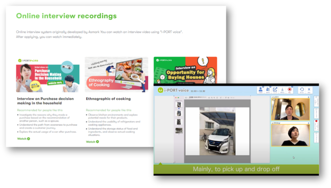 今回新たに、国内の自社モニターへ独自開発のオンラインインタビューシステム「i-PORT voice」を用いて行った、定性インタビュー動画を英語版にて各種公開しています。公開する定性インタビューは、デプスインタビューによるエスノグラフィ(行動観察)調査を中心に、定性的観点でのインサイト抽出にお役立て頂けるシリーズで主に構成されています。コンテンツは随時公開予定!今後はグループインタビューやZ世代を中心に行うインタビューもお届けしていきます。