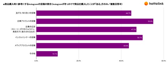 商品購入時に参考にするInstagramの投稿の割合(Instagramがきっかけで商品を購入したことが「ある」方のみ/複数回答可)