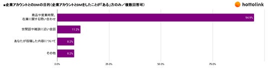 企業アカウントとのDMの目的(企業アカウントとDMしたことが「ある」方のみ/複数回答可)