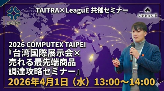 株式会社LeaguE(本社:東京都、代表取締役:武智 翔太郎)は、台湾貿易センターとの共催により、2026年4月1日(水)13:00~14:00に無料ウェビナー「台湾国際展示会×売れる最先端商品調達攻略セミナー」を開催いたします。