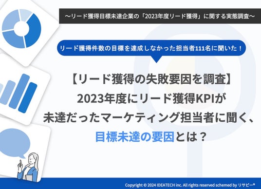 調査説明:2023年度のリード獲得目標を達成しなかったBtoB企業の要因を調査。内部要因と外部要因にわけて実態を掘り下げつつ、BtoB企業が今後注力したいマーケティング施策などを明らかにした。