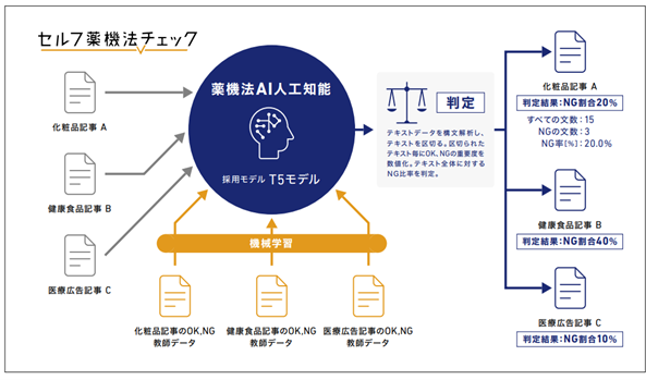 そうした中、ネオマーケティングでは約7年間のチェックデータを教師データとしてAIに機械学習させた「セルフ薬機法チェックβ版」をリリースいたします。