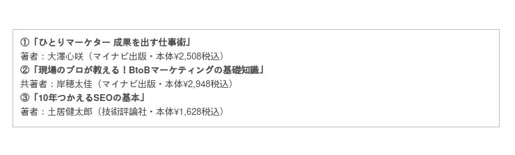 「ナイルTV / WEBマーケティング相談室」Youtubeチャンネルhttps://www.youtube.com/@NyleTV_Marketing◆賞品内容キャンペーン期間中に、条件を満たしたお客様の中から抽選で50名様へ、以下の書籍のうちどれか1冊をプレゼントいたします。