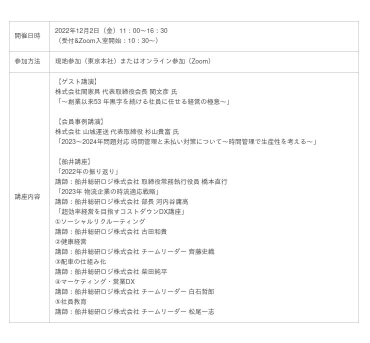 < 2022年12月2日(金)にロジスティクスプロバイダー経営研究会 会員総会2022を開催いたします! >