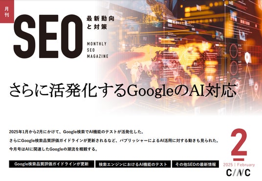 株式会社CINC(本社:東京都港区、代表取締役社長:石松友典、以下CINC)は、毎月特定のテーマのSEO最新動向と対策についてレポートする「月刊SEO」の2月号を公開しました。