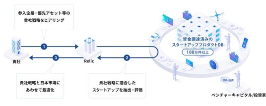 IDEATION Cloudは、事業アイデアを創出することに特化し制作した100万件以上の資金調達済み海外スタートアップデータベースから、日本市場未導入の革新的な新規事業アイデアを抽出・提供します。有力な海外VCが投資した少なくとも海外では成功の芽が出ている事業アイデアを起点に、Relicの新規事業開発の知見を活用して日本・各社に合わせたアイデアを検討することで、成功率の高いアイデアを効率的に創出します。