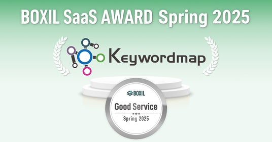 「BOXIL SaaS AWARD(ボクシル サース アワード)」は、SaaS(※)比較サイト「BOXIL SaaS(ボクシル サース)」を運営するスマートキャンプが、優れたSaaSを審査、選考、表彰するイベントです。今回の「BOXIL SaaS AWARD Spring 2025」は、2024年中に「BOXIL」上へ新たに投稿された口コミをもとに選出しています。今回「Keywordmap」は「SEOツール部門」で「Good Service」に選ばれました。
