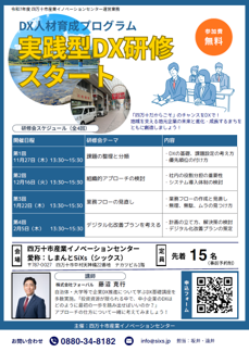 四万十市イノベーションセンターのオープンを皮切りに、11月より地域企業向けのDX人材育成研修会を開催します。今後も全4回の研修を通じて、地域企業のDX推進を支援してまいります。