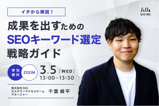 株式会社GIGは、成果を出すキーワード選定方法や、検索順位の上げ方に悩む運用担当者向けに、SEOキーワード選定についてのウェビナーを開催します。参加費無料、事前登録制。