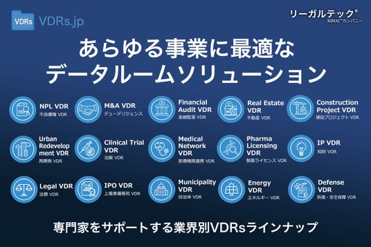 リーガルテック株式会社(本社:東京都港区、代表取締役社長:平井智之)は、機密資料の外部共有を統合管理する「VDRsポータル」を発表した。本サービスは、さまざまな業界において外部組織との協働が不可欠なプロジェクトを安全かつ効率的に推進するための新たなデータルーム基盤の提供を開始した。