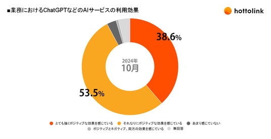 SNSマーケティング支援サービスを提供する株式会社ホットリンク(本社:東京都千代田区、証券コード:3680、代表取締役:内山幸樹、以下ホットリンク)は、生成AIツールの活用状況について、2024年10月度の社内調査を実施しました。本プレスリリースでは、全社的なAI活用の現状や今後の展望をご報告いたします。