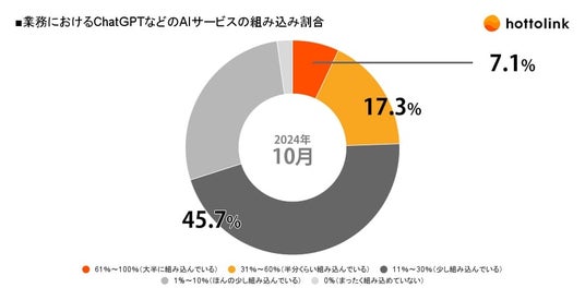 業務におけるChatGPTなどのAIサービスの組み込み割合