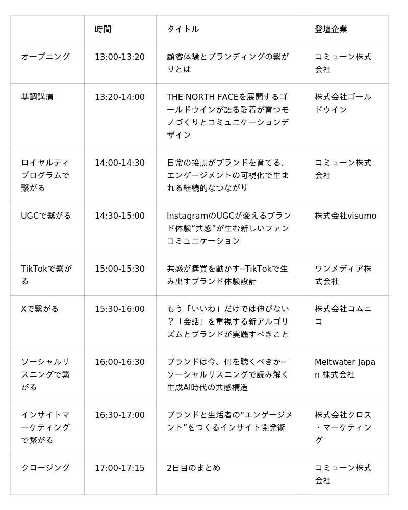 相互交流で信頼を育む「Commune」を提供するコミューン株式会社は、2025年12月10日(水)、11日(木)に開催するオンラインカンファレンス「Connect Lounge ~繋がりが創る、ブランドの新たな価値~」(以下、Connect Lounge)において、全ての登壇企業が決まりましたことをお知らせします。