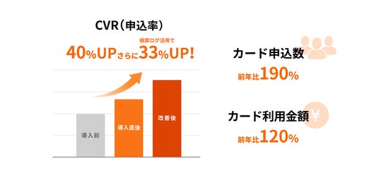 CVR(申込率)40%UP さらに検索ログ活用で33%UP! カード申込数前年比190% カード利用金額前年比120%