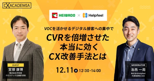 Helpfeel(ヘルプフィール)」を提供する株式会社Helpfeel(京都府京都市、代表取締役/CEO:洛西 一周、以下「当社」)は、2024年12月11日(水)に、株式会社平和堂(滋賀県彦根市、代表取締役社長執行役員CEO:平松 正嗣、以下「平和堂」)をお招きし「VOCを活かせるデジタル接客への集中でCVRを倍増させた、本当に効くCX改善手法とは」をテーマにした無料オンラインセミナーを開催します。