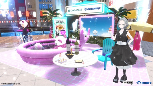 Vketおなじみ大丸松坂屋百貨店が今回も出展決定!企業出展会場2会場「パラリアルドバイ」「パラリアル大阪」に涼しげなビニールプールを設置した、真夏のプールサイド風ブースを展開します。ブース内では贈り物・お取り寄せにぴったりな食品3Dモデルがプールサイドのテーブルに並び、、初の夏仕様スーツに身を包んだ大丸松坂百貨店の社員アバター “ほぼほぼギフトの田中さん”の口元へ食品を持っていくと、その食品の味などの感想を教えてくれます。気になった商品は実際に購入することも可能です(ワインを除く)。