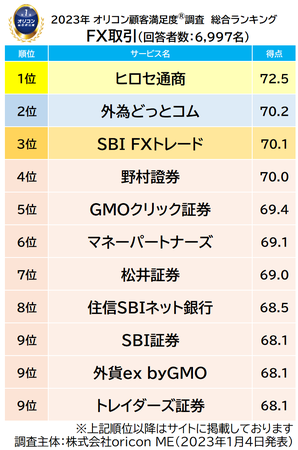 【ヒロセ通商】が4年連続通算8度目の総合1位【SBI FXトレード】がレベル別「初心者」で4年連続6度目の1位