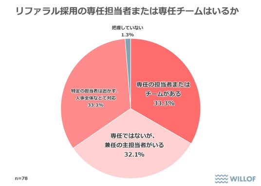 約50%が今後「リファラル採用の割合を増やしたい」と回答。一方、専任担当者の配置は3分の1に留まる