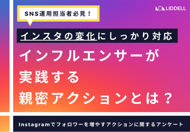 SNS・インフルエンサーマーケティング事業を展開するLIDDELL株式会社 (本社:東京都港区、代表取締役:福田 晃一、以下リデル) は、インフルエンサーを対象に、Instagram(以下、インスタグラム)でフォロワーを増やすために実践していることを調査しました。