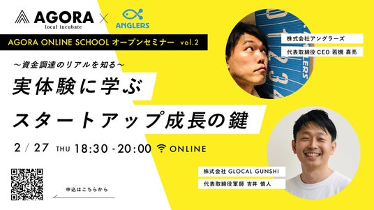 株式会社AGORA(本社:東京都町田市)は、起業に役立つ創業WEBセミナーを毎月開催。今回はスタートアップ資金調達のリアルな課題とその解決策を、実際にあらゆる方面からの資金調達に成長し事業拡大に導いた若槻嘉亮氏(わかつきひろあき)と、東京都認定インキュベーション施設にて年間200名を超える起業相談を受けている吉井慎人(よしいまこと)氏が体験談をもとに解説します。