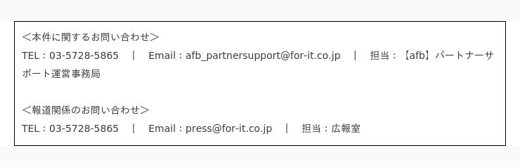 問い合わせ先:afb_partnersupport@for-it.co.jp