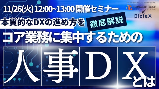 株式会社ツナググループ・ホールディングス(本社:東京都中央区、代表取締役兼執行役員社長:米田 光宏)は、2024年11月26日(火)にオンラインにて『本質的なDXの進め方を徹底解説!コア業務に集中するための人事DXとは』セミナーを開催いたします。