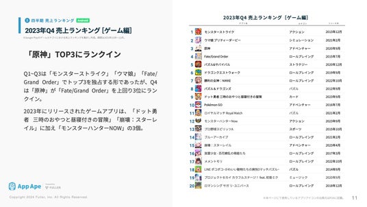 なお、四半期売上ランキングはGoogle Playのデータを元にしたランキングのため、2023年10~12月をQ4と定め調査しました。