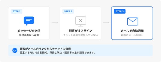 本機能は、顧客がチャット画面を閉じている状態でもメッセージの見逃しを防ぐことを目的としています。これにより、事業者と顧客のコミュニケーションがよりスムーズになり、対応の遅れや機会損失の防止につながります。