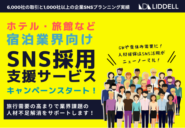 SNS・インフルエンサーマーケティング事業を展開するLIDDELL株式会社 (本社:東京都港区、代表取締役:福田 晃一、以下リデル)は、宿泊業界向けに《SNS採用支援サービス》を提供するキャンペーンを開始しました。