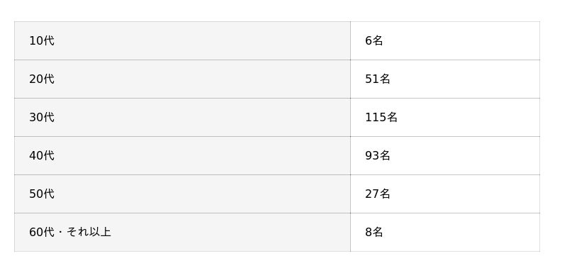 年齢層については、30代が115名(38.3%)で最も多く、次いで40代が93名(31%)となっており、この2つの年代で全体の約7割を占めています。20代も51名(17%)と一定の回答を得られており、働き盛りの世代を中心とした調査結果となりました。