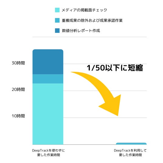 -DeepTrackを使わない場合ランダムに抽出した100ページのメディア掲載面の目視チェックを行った所要時間をもとに2000ページのチェックにかかる想定所要時間を算出。